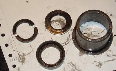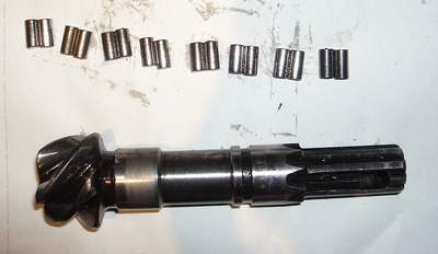 Da bietet Dieter Heyne eine sehr interessante Alternative an. Die Welle ist noch „reparabel“, solange der Durchmesser des Walzenagersitzes größer als der Durchmesser des QB20 Sitzes ist. Es werden ein paar Zehntel Millimeter von der Welle geschliffen, bis ein Walzenlager mit wechselbaren inneren Lagerring paßt. Dieses Lager hat zwar dünnere Walzen, ist aber etwas breiter als das originale Lager. Weiterhin braucht man die Halbmonde nicht mehr, da ein paar Ringe mit angefertigt werden, die den besagten inneren Ring gegen verrutschen schützen.
