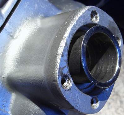 Jetzt wird das Gehäuse gut erwärmt und anschließend der äußere Ring des Walzenlagers aus Richtung Kardanwelle mit einem passenden Dorn bis zum Federring getrieben.