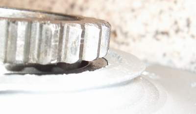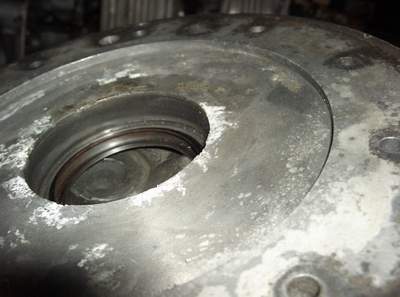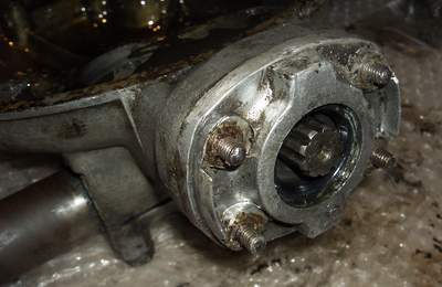 Wichtig: Meist unter einen dicken Fettschicht versteckt, befinden sich am Rande des Deckels drei Gewindelöcher, die sozusagen, einen eingebauten Abzieher darstellen - clevere Lösung!