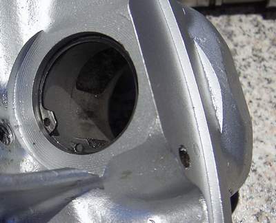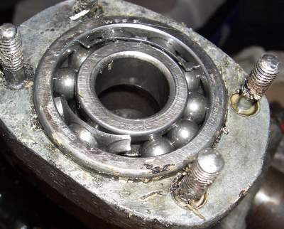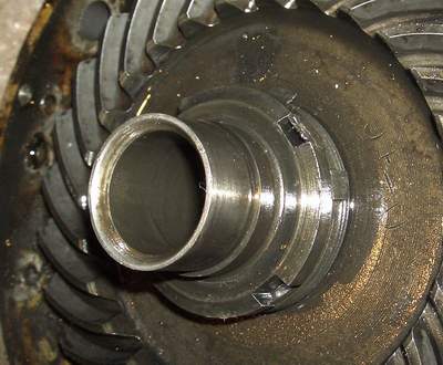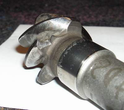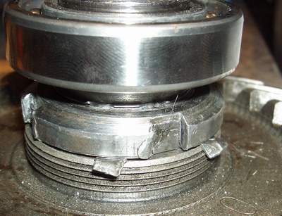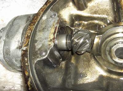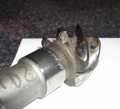 und geraten die Bruchstücke in die Verzahnung sieht das ganze dann etwa so aus: (sehr gut ist auch eine Korrosion des Lagersitzes zu erkennen)