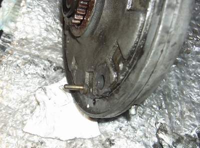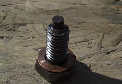 Also bohre ich einfach in die Ölablaßchraube ein Loch und klebe dort mit Epoxydharz einen kleinen Magneten ein. Somit holt man beim Ölwechsel auch gleich einen ganzen Rutsch Metallspäne mit raus.