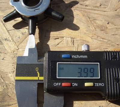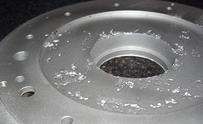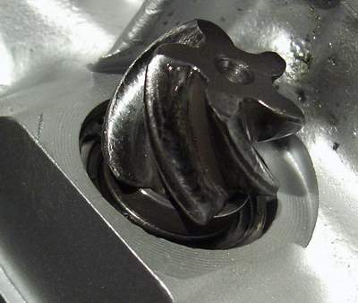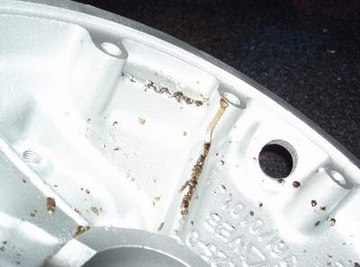 Diese Ausbrüche sind jedoch noch reparabel. Mit einem guten Diamantfräser läßt sich das oberflächengehärtete Zahnrad sehr gut bearbeiten. Falls man keinen besseren Ersatz findet, sollte man bei dem Verschleifen der Bruchstellen ruhig etwas mehr Zeit investieren. Man sollte aber darauf achten, daß keine Haarrisse existieren.