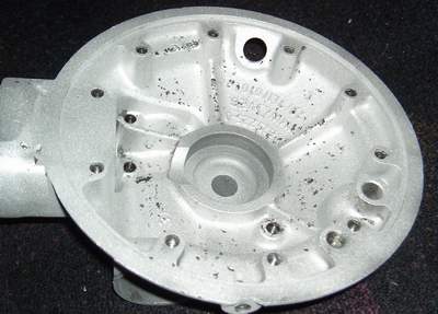 Jetzt ist der richtige Zeitpunkt gekommen alle Teile gründlich zu reinigen, und nach Schäden zu suchen. Was man oft findet ist zum Teil starke Korrosion des Elektrongusses gerade im inneren des Gehäuses.