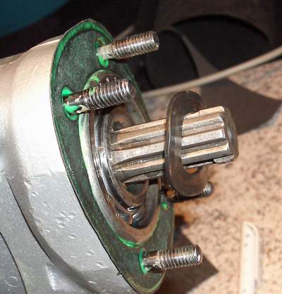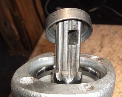 Zuerst die vordere Hälfte der äußeren Lagerschale des QB20 entfernen, dann den inneren Ring des Lagers mit den Kugeln abziehen. Danach den Ring entfernen, der die Halbmonde in der Nut der Welle hält und natürlich die Halbmonde herausnehmen, um der Welle sozusagen – freie Fahrt – zu geben.