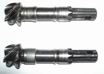 Bei der unteren Welle ist der Lagersitzdurchmesser zu klein. Das Lager hat ein derart großes Spiel, daß die Welle klappert. Dies hat wiederum einen hohen Verschleiß des Zahnrades zu Folge.