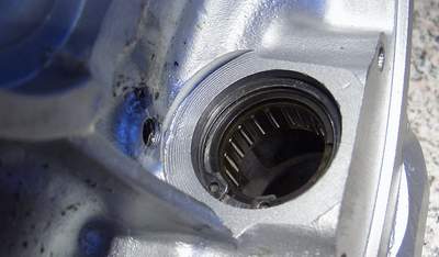 Der Segerring muß entfernt werden und der Lagerring möglichst nach vorn (also Richtung Kardanwelle) geschoben werden (erwärmen nicht vergessen). Man kann zwar ruhig erst mal Probieren den Lagerring nach innen zu schieben, da man dort auch viel besser mit einem Dorn herankommt, aber meiner Erfahrung nach ist meistens ein kleiner Grad in der Nähe der Federringnut, was die Sache sehr erschweren kann.